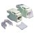 Для подключения абонентских кабелей используется способ врезного контакта сквозь изоляцию - IDC. Кабель раскладывается в пазы на крышке модуля, если необходимо обрезается. При защелкивании крышки и повороте механизма в фиксаторе, контакты прорезают изоляцию проводника. Таким образом, подключаемый кабель легко монтируется без использования инструмента.На крышке имеется цветовая маркировка, соответствующая схемам T568A и T568B.