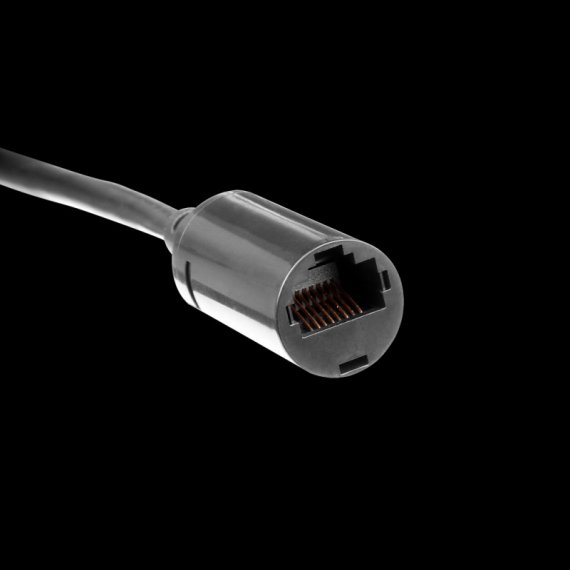 Удлинители производятся из многожильного кабеля в оболочке LSZH и имеют на одной стороне разъем RJ-45, а с другой стороны розетку RJ-45 в круглом корпусе из пластика ABS.